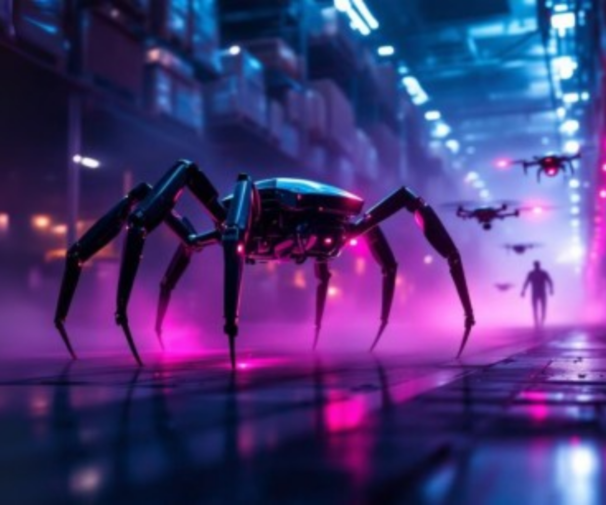 AI-guided spider-bots and drones respond instantly to threats using jammers, light barriers, and smart routing—enabling scalable, hands-free, autonomous defense for both mobile convoys and static sites.